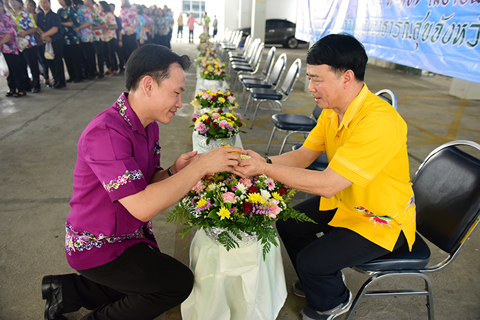 รดน้ำขอพรแด่ นพ.พนัส โสภณพงษ์ นายแพทย์สาธารณสุขจังหวัดกาญจนบุรี เพื่อสืบสานประเพณีไทยในวันสงกรานต์