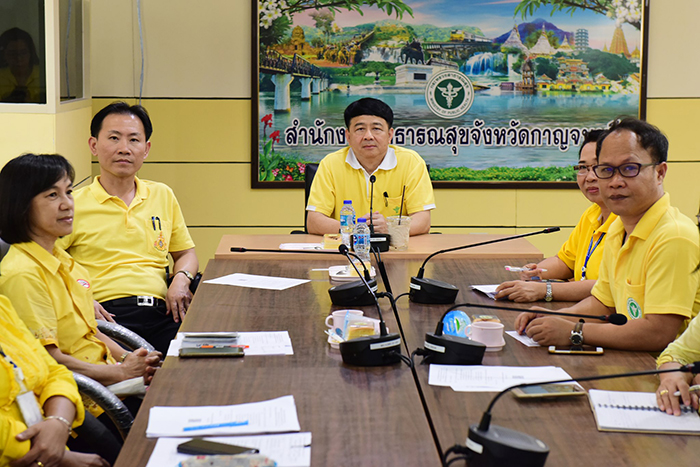 นายแพทย์พนัส โสภณพงษ์ นายแพทย์สาธารณสุขจังหวัดกาญจนบุรี พร้อมด้วยนายแพทย์สุรวิทย์ ศักดานุภาพ รองนายแพทย์สาธารณสุขจังหวัดกาญจนบุรี นำคณะเจ้าหน้าที่สาธารณสุขจังหวัดกาญจนบุรี ร่วมประชุมกับกระทรวงสาธารณสุข ในการประชุมระบบประชุมทางไกล (VDO Conference) จากห้องประชุมประชุม 2 อาคาร 1 ชั้น 2 สำนักงานปลัดกระทรวงสาธารณสุข รับฟังการสรุปผลการตรวจราชการกระทรวงสาธารณสุข ประจำปีงบประมาณ 2562 รอบที่ 1 โดยมีนายแพทย์สุขุม กาญจนพิมาย ปลัดกระทรวงสาธารณสุข เป็นประธานในการประชุม มีการนำเสนอผลการตรวจราชการตามแผนการตรวจราชการของกระทรวงสาธารณสุข ผลการตรวจราชการคณะที่ 1 การส่งเสริมสุขภาพ ป้องกันโรคและการจัดการสุขภาพ คณะที่ 2 การพัฒนาระบบบริการสุขภาพ คณะที่ 3 การพัฒนาระบบบริหารจัดการเพื่อสนับสนุนหารจัดบริการสุขภาพ และคณะที่ 4 การตรวจราชการแบบบูรณาการ โดยมีการกล่าวถึงปัญหา ข้อจำกัดจากการตรวจราชการ และข้อเสนอแนะเพื่อการแก้ไขปรับปรุงในการตรวจราชการรอบที่ 2/2562 เมื่อวันที่ 8 พฤษภาคม 2562 ณ ห้องประชุมกัลปพฤกษ์ สำนักงานสาธารณสุขจังหวัดกาญจนบุรี