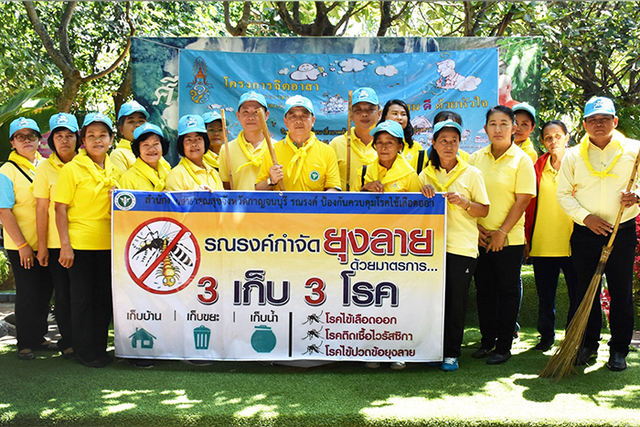 นพ.พนัส โสภณพงษ์ นายแพทย์สาธารณสุขจังหวัดกาญจนบุรี พร้อมด้วย นพ.อิทธิพล จรัสโอฬาร ผู้อำนวยการโรงพยาบาลมะการักษ์ นพ.สุรวิทย์ ศักดานุภาพ รองนายแพทย์สาธารณสุขจังหวัดกาญจนบุรี นายนุชชา เจริญโห้ สาธารณสุขอำเภอเมืองกาญจนบุรี คณะเจ้าหน้าที่สาธารณสุข จิตอาสาเราทำความดีด้วยหัวใจและภาคีเครือข่ายสุขภาพ ร่วมพัฒนาสิ่งแวดล้อมและกำจัดแหล่งเพาะพันธุ์ยุงลายเพื่อป้องกันควบคุมโรคไข้เลือดออกที่วัดไชยชุมพลชนะสงคราม (วัดใต้) นับเป็นกิจกรรมสาธารณประโยชน์ สร้างจิตสำนึกให้ประชาชนตระหนักและให้ความสำคัญในการรักษาความสะอาดของบ้านเรือน ถิ่นฐานที่อยู่ โดยช่วยกันค้นหาและกำจัดแหล่งเพาะพันธุ์ลูกน้ำยุงลาย ตามมาตรการ “3 เก็บ 3 โรค” ได้แก่ เก็บบ้าน ให้ปลอดโปร่งไม่ให้ยุงลายเกาะพัก เก็บขยะ เศษภาชนะไม่ให้เป็นแหล่งเพาะพันธุ์ของยุงลาย และเก็บน้ำ ปิดให้มิดชิดหรือเปลี่ยนถ่ายน้ำทุกสัปดาห์ไม่ให้ยุงลายวางไข่ ซึ่งสามารถป้องกันได้ถึง 3 โรค คือ ไข้เลือดออก โรคติดเชื้อไวรัสซิกา และโรคไข้ปวดข้อยุงลาย ซึ่งจังหวัดกาญจนบุรีได้เน้นย้ำให้ทุกพื้นที่ขับเคลื่อนการดำเนินงานป้องกันควบคุมโรคไข้เลือดออก โดยใช้กลไก พชอ. ทำแผนรณรงค์ในพื้นที่สาธารณะ โดยเชิญชวนหน่วยงานต่างๆ ทั้งภาครัฐและเอกชนและชุมชน โดยเฉพาะสถานที่สาธารณะที่เป็นแหล่งชุมชน เช่น วัด โรงเรียน สถานที่ท่องเที่ยว สถานประกอบการ สถานที่ราชการต่างๆ รณรงค์จัดกิจกรรมให้ทุกคนร่วมกันสำรวจลูกน้ำยุงลายตามแจกัน จานรองกระถางต้นไม้ หรือแหล่งน้ำขัง หากพบลูกน้ำให้คว่ำหรือทำลายแหล่งน้ำขังนั้นทันที และหมั่นเปลี่ยนน้ำเป็นประจำ หรือใส่ปลากินลูกน้ำ เช่น ปลากัด เป็นต้น เพื่อทำลายแหล่งเพาะพันธุ์ยุงลายซึ่งเป็นพาหะของโรคไข้เลือดออก