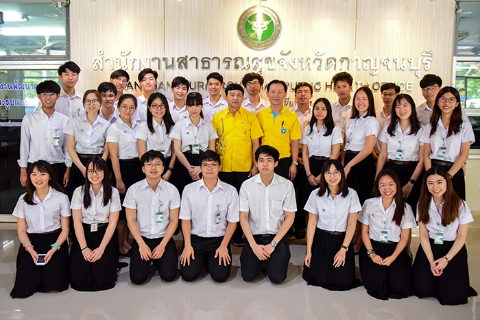 วันที่ 23 กรกฎาคม 2562 ที่ห้องประชุมมะลิวัลย์ สำนักงานสาธารณสุขจังหวัดกาญจนบุรี นพ.พนัส โสพณพงษ์ นายแพทย์สาธารณสุขจังหวัดกาญจนบุรี และ นพ.สุรวิทย์ ศักดานุภาพ รองนายแพทย์สาธารณสุขจังหวัดกาญจนบุรี กล่าวต้อนรับและพูดคุยกับ นักศึกษาแพทย์ชั้นปีที่ 4 คณะแพทยศาสตร์ศิริราชพยาบาล ในการออกฝึกปฏิบัติงาน วิชาเวชศาสตร์ชุมชน