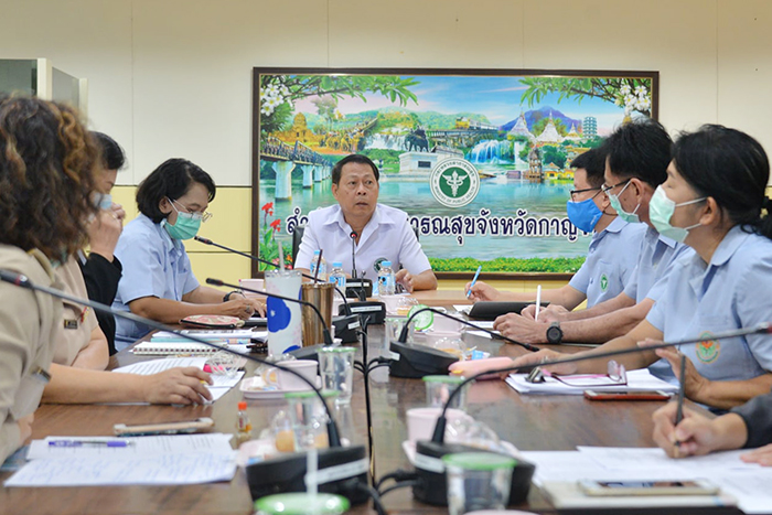 วันที่ 7 ธันวาคม 2563 เวลา 09.30 น. ที่ห้องประชุมกัลปพฤกษ์ (VDO Conference) สำนักงานสาธารณสุขจังหวัดกาญจนบุรี นพ.นิพนธ์ พัฒนกิจเรือง นายแพทย์สาธารณสุขจังหวัดกาญจนบุรี พร้อมด้วยรองนายแพทย์สาธารณสุขจังหวัดกาญจนบุรี คณะกรรมการตามระบบบัญชาการเหตุการณ์ภาวะฉุกเฉินทางสาธารณสุขและผู้เกี่ยวข้อง ร่วมประชุมเปิดศูนย์ปฏิบัติการด้านการแพทย์และสาธารณสุขตอบโต้ภาวะฉุกเฉิน (EOC) กรณี โรคติดเชื้อไวรัสโคโรนา 2019 จังหวัดกาญจนบุรี เพื่อเตรียมความพร้อมและเปิดศูนย์ปฏิบัติการด้านการแพทย์และสาธารณสุขตอบโต้ภาวะฉุกเฉิน (EOC) เพื่อติดตาม ประเมินสถานการณ์โรคติดเชื้อไวรัสโคโรนา 2019 สรุปสถานการณ์และแนวโน้มสถานการณ์โรคติดเชื้อไวรัสโคโรนา 2019 โดยกลุ่มงานควบคุมโรคติดต่อ ข้อสั่งการปลัดกระทรวงสาธารณสุขโดยกลุ่มงานพัฒนายุทธศาสตร์สาธารณสุข เน้นย้ำมาตรการการดำเนินงานตามมาตรการเฝ้าระวัง ป้องกันและควบคุมโรค ติดเชื้อไวรัสโคโรนา 2019 และติดตามการเตรียมความพร้อมของแต่ละกลุ่มภารกิจตามระบบบัญชาการเหตุการณ์ กลุ่มภารกิจปฏิบัติการ (Operation) ทีมสอบสวนควบคุมโรค (Disease Control Team) กลุ่มภารกิจดูแลรักษาผู้ป่วย (Case Management) กลุ่มภารกิจสำรองเวชภัณฑ์ และส่งกำลังบำรุง (Stockpiling and Logistics) กลุ่มภารกิจสื่อสารความเสี่ยงและการประชาสัมพันธ์ (Risk communication) กลุ่มภารกิจการเงินและงบประมาณ (Finance Section) กลุ่มภารกิจกฎหมาย(LAW)