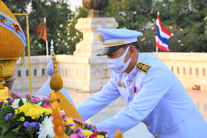วันนี้ (18 มกราคม 2564) เวลา 06.00 น. ที่พระบรมราชานุสาวรีย์ สมเด็จพระนเรศวรมหาราช ตำบลดอนเจดีย์ อำเภอพนมทวน จังหวัดกาญจนบุรี นพ.นิพนธ์ พัฒนกิจเรือง นายแพทย์สาธารณสุขจังหวัดกาญจนบุรี นำคณะเจ้าหน้าที่สาธารณสุข ร่วมพิธีถวายสักการะ พุ่มเงิน-พุ่มทอง พระบรมราชานุสาวรีย์ สมเด็จพระนเรศวรมหาราช เนื่องในวันคล้ายวันสมเด็จพระนเรศวรมหาราช ทรงกระทำยุทธหัตถีชนะราชศัตรูหรือวันยุทธหัตถี ประจำปี 2564 โดยมีนายจีระเกียรติ ภูมิสวัสดิ์ ผู้ว่าราชการจังหวัดกาญจนบุรี พร้อมด้วย นางรชยา ภูมิสวัสดิ์ นายกเหล่ากาชาดจังหวัดกาญจนบุรี หัวหน้าส่วนราชการ ข้าราชการ ทหาร ตำรวจ และประชาชน ร่วมพิธีโดยพร้อมเพรียงกัน