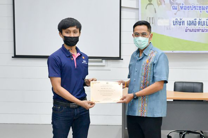 มอบเกียรติบัตรผู้เข้าอบรมอาสาสมัครสาธารณสุขต่างด้าว (อสต.) ในสถานประกอบการ