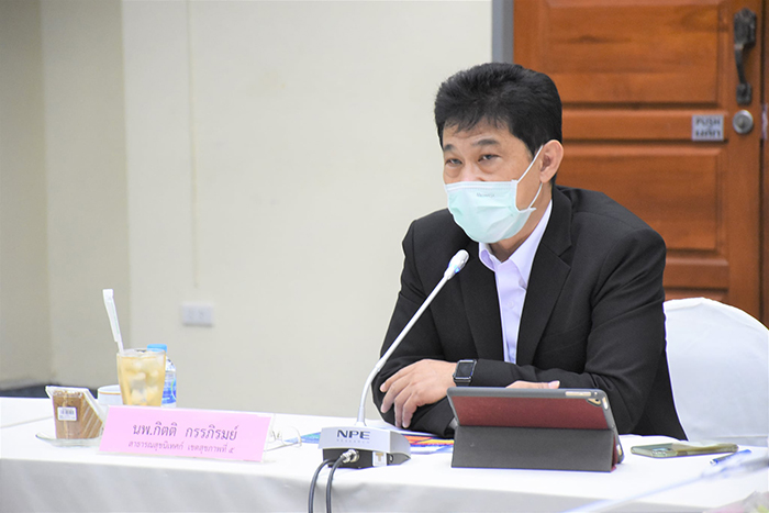 วันที่ 7 กรกฎาคม 2564 เวลา 13.00 น. ที่ห้องประชุมอาคารหลวงปู่หลิว สำนักงานสาธารณสุขจังหวัดกาญจนบุรี นพ.กิตติ กรรภิรมย์ สาธารณสุขนิเทศ เขตสุขภาพที่ 5 กระทรวงสาธารณสุข ลงพื้นที่ตรวจเยี่ยมประชุมติดตามความก้าวหน้า การควบคุมป้องกันโรคติดเชื้อไวรัสโคโรนา 2019 จังหวัดกาญจนบุรี โดยมี นพ.นิพนธ์ พัฒนกิจเรือง นายแพทย์สาธารณสุขจังหวัดกาญจนบุรี และเจ้าหน้าที่สาธารณสุข ให้การต้อนรับ มีการนำเสนอสถานการณ์โรคติดเชื้อไวรัสโคโรนา 2019 โดยมีผู้อำนวยการโรงพยาบาลชุมชน/สาธารณสุขอำเภอ ทุกแห่ง ร่วมประชุมผ่านระบบ ZOOM