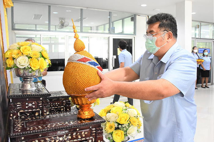 วันนี้ (29 ตุลาคม 2564) ที่บริเวณห้องโถงอาคารมัชฌิมาคาร สำนักงานสาธารณสุขจังหวัดกาญจนบุรี นายแพทย์ชาติชาย กิติยานันท์ นายแพทย์สาธารณสุขจังหวัดกาญจนบุรี เป็นประธานในพิธีวางพานพุ่มดอกไม้ถวายราชสักการะพระบาทสมเด็จพระนั่งเกล้าเจ้าอยู่หัว พระมหาเจษฎาราชเจ้า “พระบิดาแห่งการแพทย์แผนไทย” เนื่องใน “วันภูมิปัญญาการแพทย์แผนไทย” โดยมี ภก.วรรณะ วีระผาสุก รองนายแพทย์สาธารณสุขจังหวัดกาญจนบุรีเป็นผู้กล่าวรายงานความเป็นมา นายอนุชา วรหาญ รองนายแพทย์สาธารณสุขจังหวัดกาญจนบุรี นายวิสิทธิ์ ปิ่นประชานันท์ รองนายแพทย์สาธารณสุขจังหวัดกาญจนบุรี คณะผู้บริหารสาธารณสุขจังหวัดกาญจนบุรีและเจ้าหน้าที่สาธารณสุขร่วมพิธีโดยพร้อมเพรียงกัน