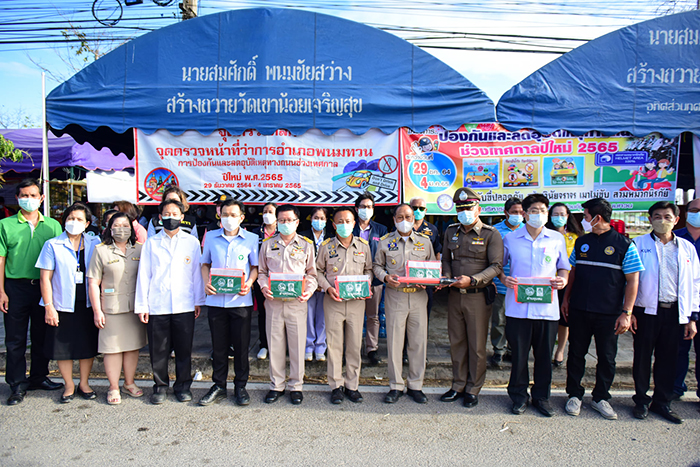 วันที่ 29 ธันวาคม 2564 เวลา 16.00 น. นายแพทย์ชาติชาย กิติยานันท์ นายแพทย์สาธารณสุขจังหวัดกาญจนบุรี มอบหมายให้นายอนุชา วรหาญ รองนายแพทย์สาธารณสุขจังหวัดกาญจนบุรี ออกติดตามเยี่ยมจุดตรวจศูนย์ปฏิบัติการป้องกันและลดอุบัติเหตุทางถนนในช่วงเทศกาลปีใหม่ พ.ศ.2565 โดยมี นายสมหวัง บุญระยอง รองผู้ว่าราชการจังหวัดกาญจนบุรี เป็นประธานในการตรวจเยี่ยม