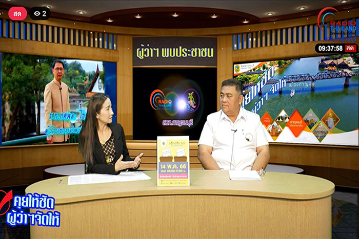 วันนี้ 21 เมษายน 2566 เวลา 09.30 น. ที่สถานีวิทยุกระจายเสียงแห่งประเทศไทยจังหวัดกาญจนบุรี (สวท.กาญจนบุรี AM558 KHz / Radiokan Prd live) นายแพทย์ชาติชาติ กิติยานันท์ นายแพทย์สาธารณสุขจังหวัดกาญจนบุรี ให้สัมภาษณ์สดในรายการ “คุยให้ชัด ผู้ว่าฯ จัดให้” ร่วมรายการกับคุณณัฏฐภัส เหลืองพฤกษชาติ นักสื่อสารมวลชนปฏิบัติการ เรื่อง การป้องกันโรคและภัยสุขภาพในช่วงฤดูร้อนและการป้องกันโรคโควิด-19 หลังเทศกาลสงกรานต์ ปี 2566 ซึ่งการดูแลสุขภาพป้องกันโรคและภัยสุขภาพในช่วงฤดูร้อนที่พบบ่อย ควรระวังป้องกันโรคติดต่อทางเดินอาหารและน้ำ ได้แก่ โรคอาหารเป็นพิษ โรคอหิวาตกโรค โรคอุจจาระร่วงเฉียบพลัน บิด โรคไวรัสตับอักเสบ เอ และ อี รวมทั้งโรคจากสัตว์สู่คนที่สำคัญในช่วงหน้าร้อนคือโรคพิษสุนัขบ้า ภัยสุขภาพในช่วงฤดูร้อน ได้แก่ การเจ็บป่วยและเสียชีวิตจากภาวะอากาศร้อน โรคลมแดด และการป้องกันเด็กจมน้ำเนื่องจากฤดูร้อนและเด็กปิดภาคเรียนด้วย เบื้องต้นขอแนะนำประชาชนระมัดระวังความสะอาดของน้ำและอาหารมากขึ้น อย่าลืม “กินร้อน ใช้ช้อนกลาง ล้างมือบ่อยๆ”