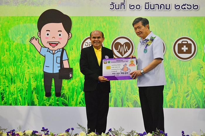 ประธานชมรม อสม.จังหวัดกาญจนบุรี รับมอบบัตร Smart Card (บัตรประจำตัวอาสาสมัครสาธารณสุขประจำหมู่บ้าน หรือ อสม.)