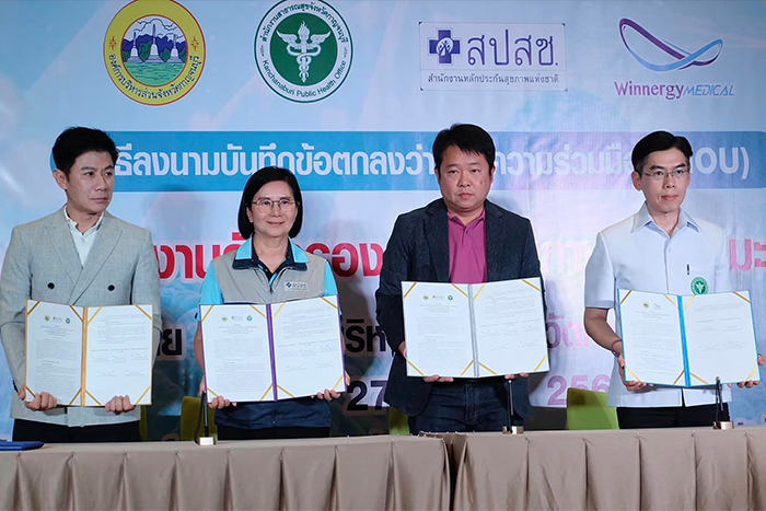 นายแพทย์สาธารณสุขจังหวัดกาญจนบุรี ร่วมลงนาม MOU การให้บริการคัดกรองมะเร็งปากมดลูก เพื่อให้ประชาชนเข้าถึงบริการด้านการส่งเสริมสุขภาพได้อย่างทั่วถึง พร้อมแนะ “ตรวจเร็ว พบเร็ว รักษาเร็ว”
