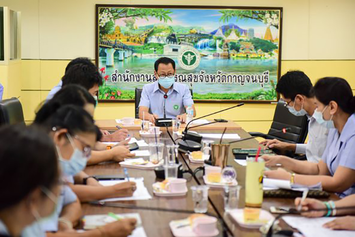 วันที่ 29 มิถุนายน 2564 เวลา 09.30 น. ที่ห้องประชุมกัลปพฤกษ์ (Video conference) ชั้น 2 สำนักงานสาธารณสุขจังหวัดกาญจนบุรี นพ.นิพนธ์ พัฒนกิจเรือง นายแพทย์สาธารณสุขจังหวัดกาญจนบุรี นำคณะเจ้าหน้าที่สาธารณสุข ร่วมอบรมครู ตชด. (ครู ก.) โครงการอนุรักษ์สืบทอดและใช้ประโยชน์ภูมิปัญยาการแพทย์แผนไทย และสมุนไพรไทยในโรงเรียน ผ่านระบบ Zoom Cloud Meeting จากห้องประชุม 1 อาคาร 1 ชั้น 1 กรมการแพทย์แผนไทยและการแพทย์ทางเลือก กระทรวงสาธารณสุข โดยมี นพ.ขวัญชัย วิศิษฐานนท์ รองอธิบดีกรมการแพทย์แผนไทยและการแพทย์ทางเลือก บรรยายพิเศษเรื่องการดำเนินงานตามนโยบาย และทิศทางในการพัฒนาการแพทย์แผนไทย การแพทย์พื้นบ้าน และสมุนไพร สู่การต่อยอดองค์ความรู้เพื่อการดูแลตนเองและชุมชนในอนาคต