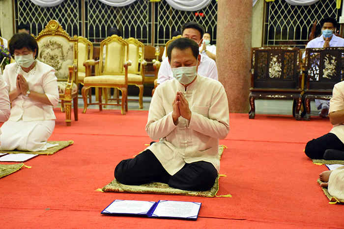 วันนี้ (26 กุมภาพันธ์ 2564) เวลา 19.00 น. ที่วัดไชยชุมพลชนะสงคราม พระอารามหลวง (วัดใต้) อ.เมือง จ.กาญจนบุรี นพ.นิพนธ์ พัฒนกิจเรือง นายแพทย์สาธารณสุขจังหวัดกาญจนบุรี นำคณะเจ้าหน้าที่สาธารณสุขร่วมพิธีฟังพระธรรมเทศนา และเวียนเทียน เนื่องในเทศกาลวันมาฆบูชา จังหวัดกาญจนบุรี ประจำปี 2564 โดยมีนายชำนาญ ชื่นตา รองผู้ว่าราชการจังหวัดกาญจนบุรี เป็นประธานในพิธี