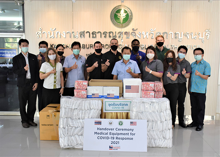 วันที่ 3 มีนาคม 2564 เวลา 09.30 น. ที่ห้องประชุมมะลิวัลย์ ชั้น 1 อาคารสุรพงษ์ สำนักงานสาธารณสุขจังหวัดกาญจนบุรี นพ.นิพนธ์ พัฒนกิจเรือง นายแพทย์สาธารณสุขจังหวัดกาญจนบุรี และคณะเจ้าหน้าที่สำนักงานสาธารณสุขจังหวัดกาญจนบุรี รับมอบอุปกรณ์ทางห้องปฏิบัติการและเวชภัณฑ์ จากกองโรคติดต่อทั่วไปและสถานฑูตสหรัฐอเมริกา(US Embassy;Civil Military Support Element Thailand)ได้สนับสนุนอุปกรณ์ทางห้องปฏิบัติการและเวชภัณฑ์ให้พื้นที่ที่มีความต้องการเพื่อใช้ในการดำเนินงานด้านการเฝ้าระวังและควบคุมการระบาดของโรคติดเชื้อไวรัสโคโรนา 2019