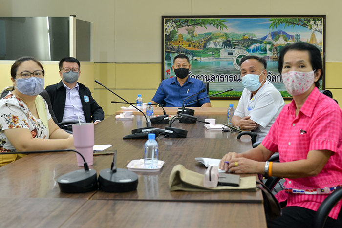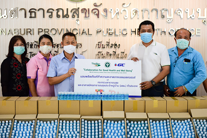 วันที่ 26 พฤษภาคม 2563 ที่ห้องโถงอาคารมัชฌิมาคาร สำนักงานสาธารณสุขจังหวัดกาญจนบุรี นพ.นิพนธ์ พัฒนกิจเรือง นายแพทย์สาธารณสุขจังหวัดกาญจนบุรี รับมอบผลิตภัณฑ์ทำความสะอาดจากเจลแอลกอฮอล์ GelCo 50 ml จำนวน 14,200 ขวด จากบริษัท น้ำทิพย์ จำกัด (สำนักงานใหญ่) จังหวัดนครปฐม โดยสำนักงานสาธารณสุขจังหวัดกาญจนบุรี จะนำไปจัดสรรให้กับอาสาสมัครสาธารณสุขประจำหมู่บ้าน (อสม.) จังหวัดกาญจนบุรี เพื่อใช้ในการป้องกันการแพร่กระจายเชื้อไวรัสโคโรนา 2019 (COVID-19)