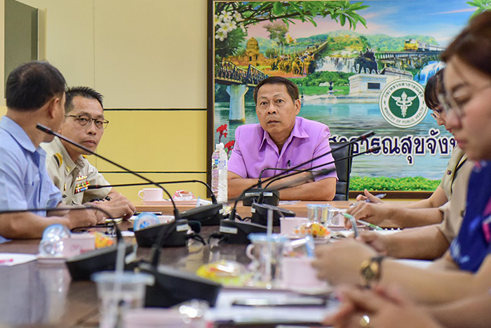 วันที่ 5 ธันวาคม 2562 เวลา 09.00 น. ที่ศาลา 60 พรรษามหาราช เทศบาลเมืองกาญจนบุรี จังหวัดกาญจนบุรี นพ.นิพนธ์ พัฒนกิจเรือง นายแพทย์สาธารณสุขจังหวัดกาญจนบุรี นพ.สุรวิทย์ ศักดานุภาพ รองนายแพทย์สาธารณสุขจังหวัดกาญจนบุรี นำคณะเจ้าหน้าที่สำนักงานสาธารณสุขจังหวัดกาญจนบุรี ร่วมพิธีถวายพานพุ่มดอกไม้และถวายบังคม หน้าพระบรมฉายาลักษณ์พระบาทสมเด็จพระบรมชนกาธิเบศร มหาภูมิพลอดุลยเดชมหาราช บรมนาถบพิตร โดยมี นายจีระเกียรติ ภูมิสวัสดิ์ ผู้ว่าราชการจังหวัดกาญจนบุรี เป็นประธานในระดับจังหวัดพร้อมนำส่วนราชการ ข้าราชการ ทหาร ตำรวจ สถานศึกษา กลุ่มพลังมวลชนและประชาชนชาวจังหวัดกาญจนบุรี เข้าร่วมพิธีถวายบังคมพร้อมกัน 3 ครั้ง เพื่อแสดงความกตัญญูกตเวที และน้อมสำนึกในพระมหากรุณาธิคุณหาที่สุดมิได้
